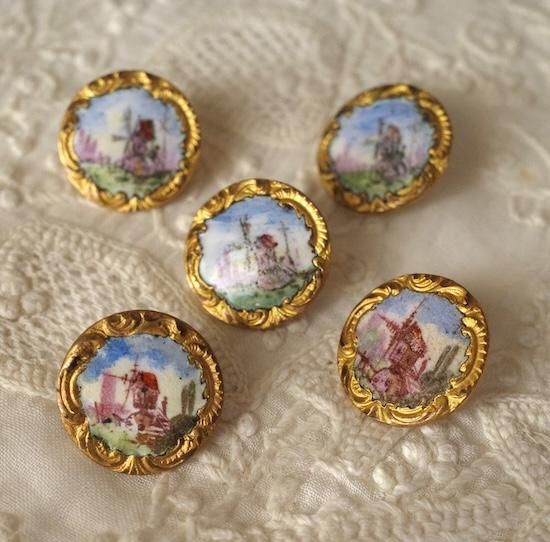 図変わりの風景を描いた珍しいエナメルのボタン
